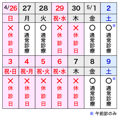 2026.04.13 お知らせ:ゴールデンウィーク中の診療予定について
